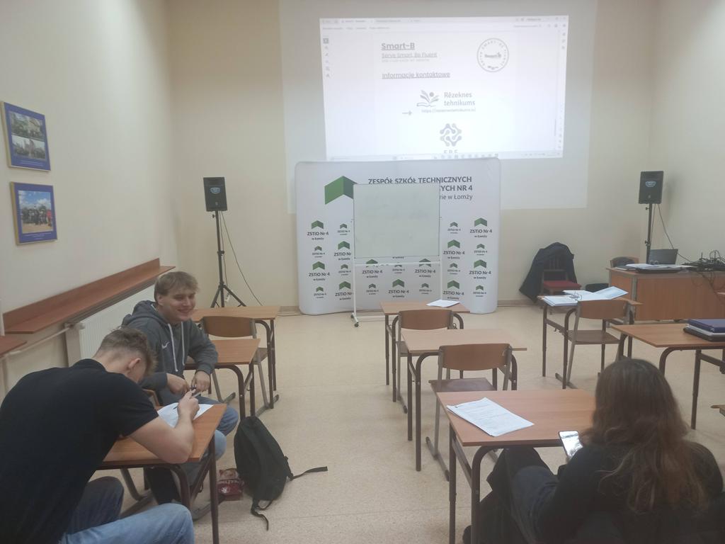 W dniu 16.12.2025r. odbyło się spotkanie ewaluacyjne z wyjazdu uczniów z Zespołu Szkół Technicznych i Ogólnokształcących Nr 4 im. Marii Skłodowskiej-Curie w Łomży do Hiszpanii na staże zagraniczne w ramach przedsięwzięcia Gastrobuild o numerze 2024-1-PL01-KA122-VET-000234669 współfinansowanego przez Unię Europejską ze środków Europejskiego Funduszu Społecznego+ w Programie Fundusze Europejskie dla Rozwoju Społecznego 2021-2027 realizowanego na zasadach Programu Erasmus+.