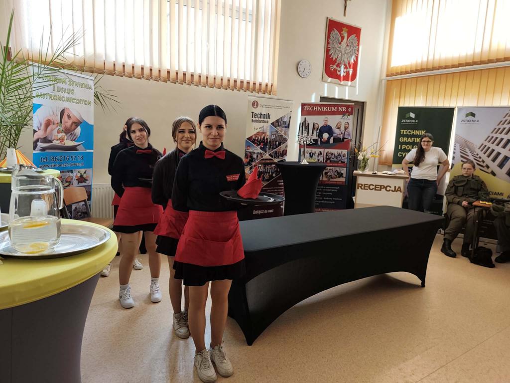 Goście rozmawiali z reprezentantami klas mundurowych oraz technikum budownictwa. Następnie był poczęstunek przygotowany przez uczniów naszej szkoły, prezentacja o kierunkach kształcenia oraz pokaz kelnerski.