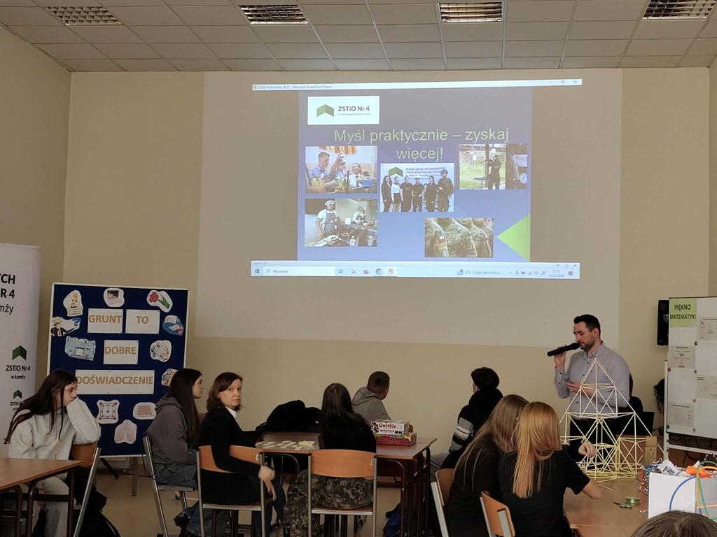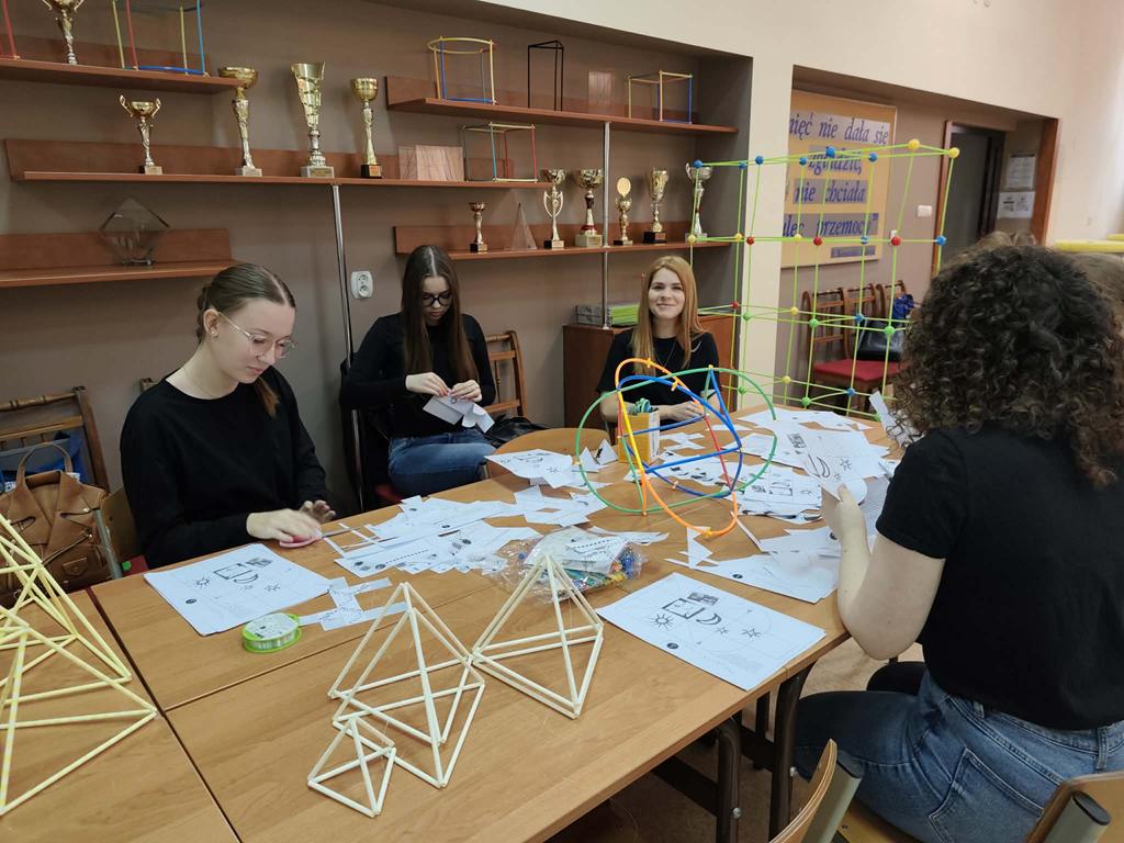 Grunt to dobre doświadczenie! pod takim hasłem odbyło się w naszej szkole wydarzenie promocyjne dla zaproszonych ósmoklasistów ze Szkoły Podstawowej nr 10 im. Jana Pawła II z Łomży . Uczniowie uczestniczyli w zajęciach, gdzie poprzez doświadczenie dotykali tajników fizyki (pokaz prawa Coulomba, obserwacja linii pola magnetycznego) i chemii (efektowny wulkan, piękna lampa lawy). Pod kierunkiem starszych uczennic samodzielnie kleili modele brył przestrzennych czy budowali szkielety brył ze słomek , składali również origamii oraz próbowali swoich umiejętności w grach matematycznych takich jak rummikub, qwirkle czy ubongo. Uczestniczyli również w lekcji biologii oraz zwiedzili pracownię komputerową.