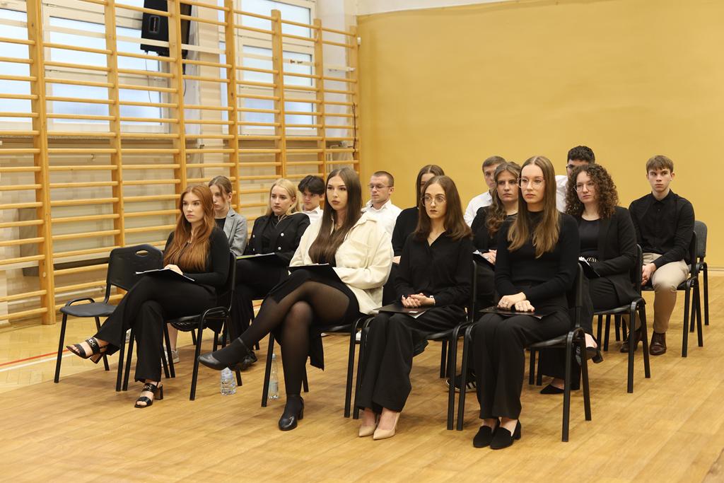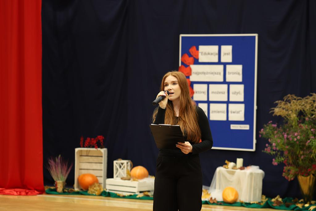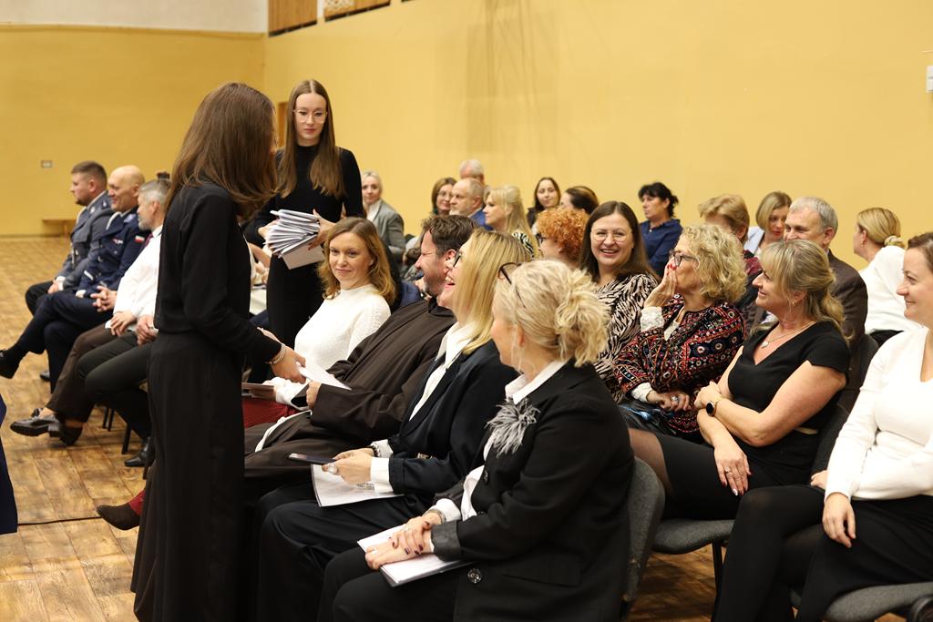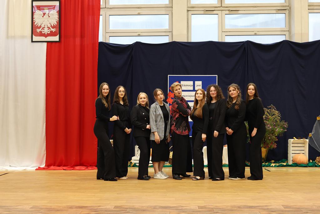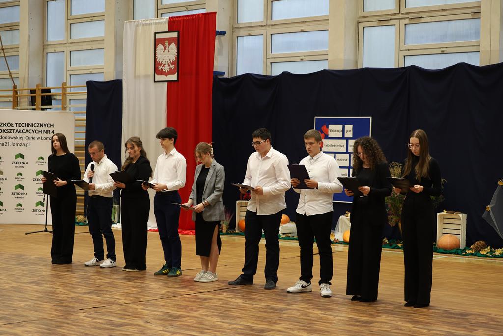 W dniu 24.10.2025 r. w Hali Sportowej ZSTiO Nr 4 w Łomży odbyła się podwójna uroczystość z okazji Ślubowania uczniów klas pierwszych oraz Dnia Edukacji Narodowej, popularnie zwanej Dniem Nauczyciela. Na spotkanie przybyli uczniowie, nauczyciele, rodzice oraz zaproszeni goście – młodszy inspektor Pan Piotr Klej oraz młodszy aspirant Pan Marcin Lipiński z Komendy Miejskiej Policji w Łomży, Pani Anna Dziemiańczuk, Komendant Ochotniczego Hufca Pracy w Łomży oraz Gwardian Klasztoru Zakonu Braci Mniejszych Kapucynów w Łomży i jednocześnie proboszcz naszej parafii, ojciec Michał Kulczycki.