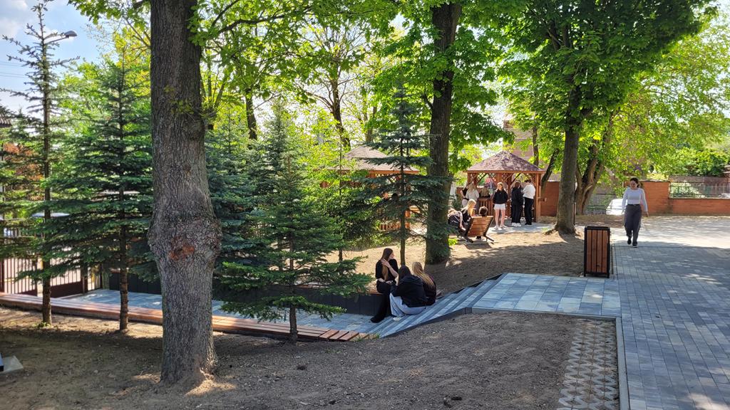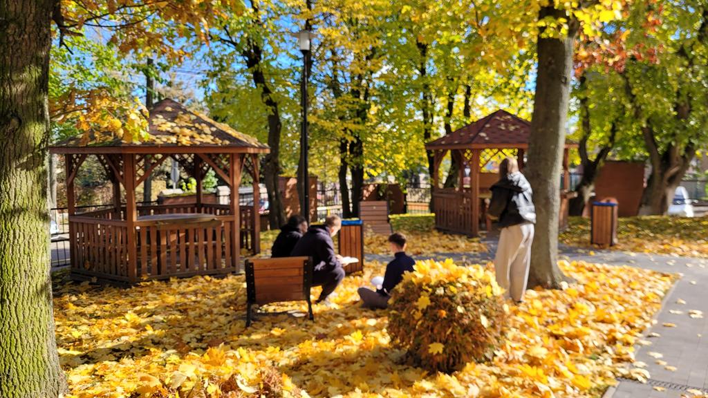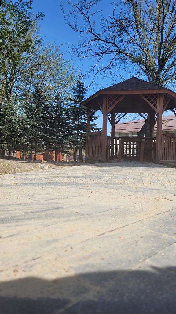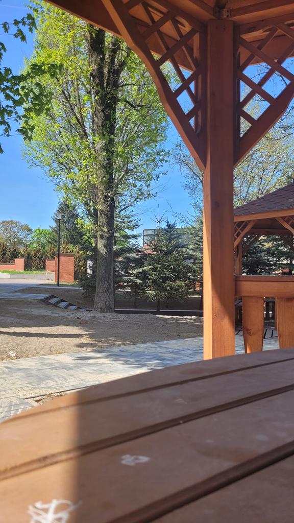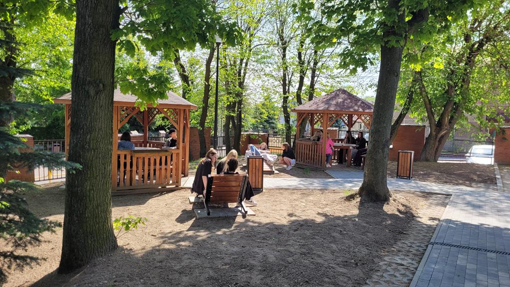 Zadanie zostało zrealizowane w maju 2025r. Dziś Zielona Strefa Relaksu w jesiennej odsłonie jest wykorzystana i wzbogaca tereny zielone wokół szkoły dla prowadzenia zajęć, relaksu i rekreacji społeczności szkolnej. Jest też udostępniona mieszkańcom Łomży.
