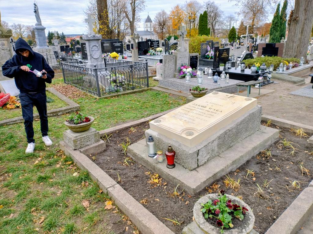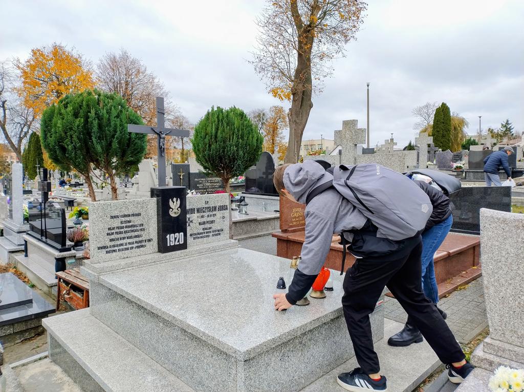 „Ojczyzna to ziemia i groby. Narody tracąc pamięć, tracą życie”. Cyprian Kamil Norwid 31 października- uczniowie kl. 1MZ , 1bBW oraz 3BW Szkoły Branżowej I stopnia pod opieką p. Kamila Galanka uczestniczyli w lekcji lokalnej historii i patriotyzmu. Młodzież, odwiedzając w przeddzień Święta Zmarłych zabytkową łomżyńską nekropolię przy ulicy M. Kopernika, zobaczyła nagrobki i pomniki upamiętniające zasłużonych Łomżan: m.in Jakuba Wagi oraz poległych podczas powstania listopadowego. Oddała też hołd lokalnym bohaterom walczącym o wolność Ojczyzny, zapalając znicze pamięci na grobach uczestników walk Legionów Polskich i wojny polsko-bolszewickiej 1920r.: majora Gwido Mieczysława Bursy oraz ppłk. Jerzego Sawy Sawickiego- dowódcy 33 Pułku Piechoty w Łomży, a także obrońcy Westerplatte we wrześniu 1939r.-Wincentego Kłysa oraz na zbiorowej mogile Żołnierzy Narodowych Sił Zbrojnych. Uczniowie wykonali zdjęcia nagrobków tych postaci. Fotografie zostaną zaprezentowane społeczności naszego zespołu na ekspozycji szkolnej w ramach projektu historycznego „Łomżyńscy bohaterowie walk o wolność Ojczyzny” realizowanego pod kierunkiem p. Elżbiety Wiśniewskiej.