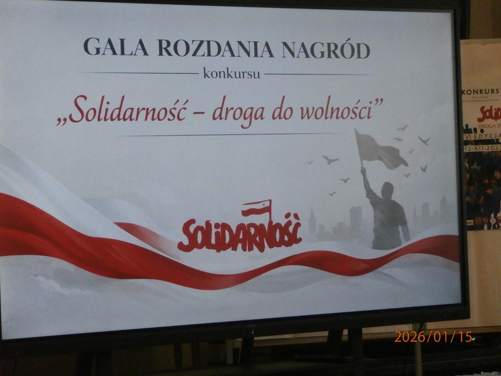 15 stycznia 2026r.w Centrum Edukacji Nauczycieli w Łomży odbyła się gala rozdania nagród i dyplomów laureatom i finalistom VI edycji Konkursu wiedzy „Solidarność-droga do wolności”. Wśród finalistów znaleźli się uczniowie naszej szkoły: Kamil Pianka z klasy 4PP i Damian Rybicki z klasy 4AP przygotowani przez panią Elżbietę Wiśniewską oraz Jan Cholewicki z klasy 3AW, który pracował pod kierunkiem pana Zenona Borawskiego.