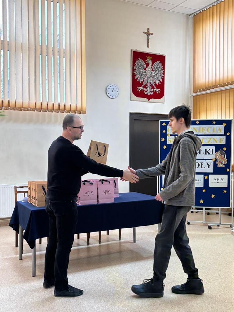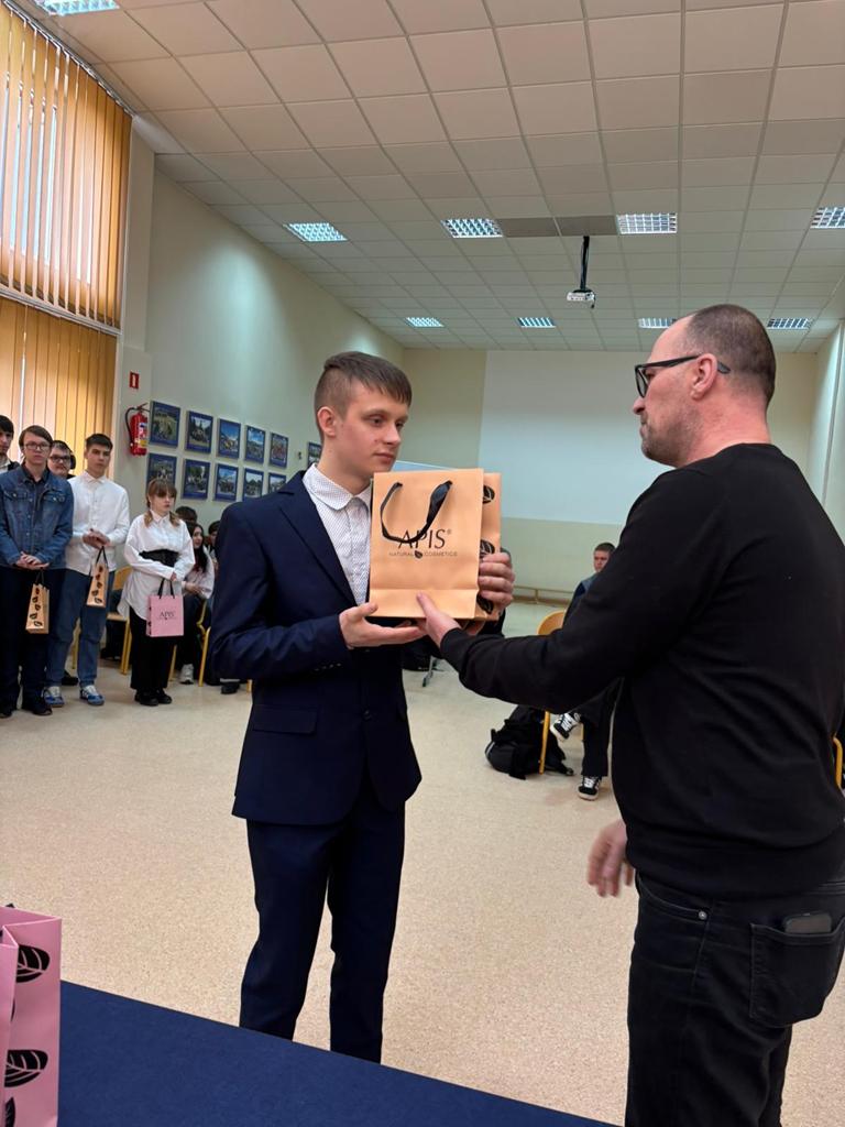 Uroczystość z udziałem partnera wydarzenia - firmy Apis Cosmetics. W naszej szkole odbyło się uroczyste wręczenie nagród w ramach akcji Osiągnięcia śródroczne- Perełki Szkoły .Podczas wydarzenia wyróżnieni zostali uczniowie, którzy osiągnęli średnią ocen powyżej 4,0, wykazując się systematyczną pracą, zaangażowaniem oraz wysokimi wynikami w nauce. Był to wyjątkowy moment pełen dumy, radości i zasłużonych gratulacji. Serdeczne podziękowania kierujemy do firmy Apis Cosmetics - partnera wydarzenia, która chętnie włączyła się w naszą inicjatywę i wsparła nas w przygotowaniu nagród. Dzięki jej zaangażowaniu mogliśmy w wyjątkowy sposób docenić wysiłek naszych uczniów. Gratulujemy wszystkim nagrodzonym i życzymy dalszych sukcesów w kolejnych miesiącach nauki!