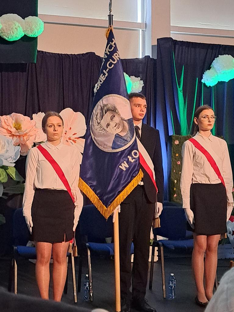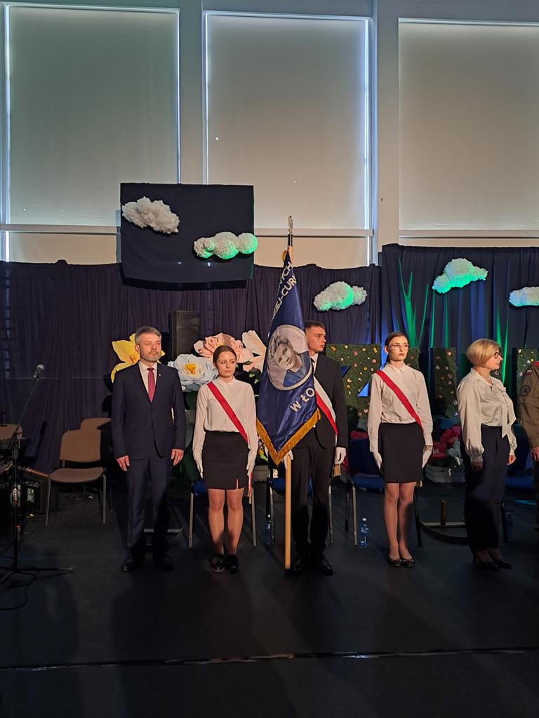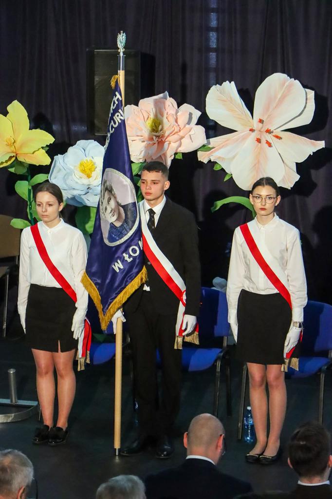 W ceremonii udział wzięły liczne poczty sztandarowe, reprezentujące łomżyńskie placówki oświatowe. Wśród nich nie zabrakło również delegacji naszej szkoły, której sztandar godnie reprezentowali uczniowie: Amelia Milewska z klasy 3PP, Arika Brzostek z klasy 3AP, Tomasz Mierzejewski z klasy 3TB, Zofia Cwalina z klasy 4PP oraz Jakub Mucharski z klasy 3TB pod opieką Pana Mirosława Zdrodowskiego.