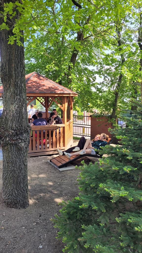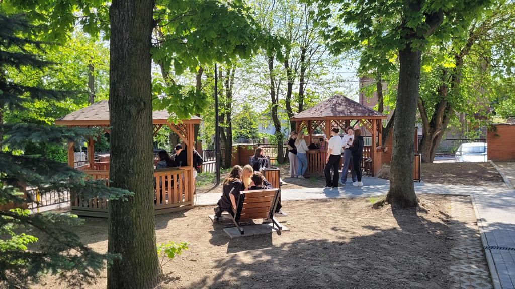Zadanie zostało zrealizowane w maju 2025r. Dziś Zielona Strefa Relaksu w jesiennej odsłonie jest wykorzystana i wzbogaca tereny zielone wokół szkoły dla prowadzenia zajęć, relaksu i rekreacji społeczności szkolnej. Jest też udostępniona mieszkańcom Łomży.