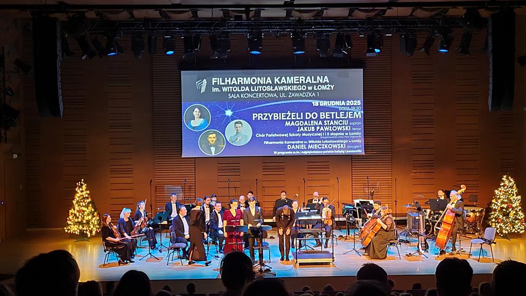18 grudnia 2025 r., w wyjątkowym przedświątecznym czasie, młodzież naszej szkoły wraz z nauczycielami uczestniczyła w wyjściu grupowym do Filharmonii Łomżyńskiej. Uczniowie wysłuchali koncertu kolęd i pastorałek, był to czas pełen muzyki, radości i świątecznego nastroju. Wspólne śpiewanie sprzyjało integracji zespołów klasowych, pozwoliło również poczuć magię nadchodzących świąt. W wydarzeniu wzięły udział klasy techniczne o profilu: technik hotelarstwa, technik żywienia i usług gastronomicznych oraz technik budownictwa. Inicjatorką tego pięknego spotkania była Pani Edyta Trzaska. Dzięki Jej zaangażowaniu uczniowie mogli wspólnie celebrować tradycję kolędowania w murach filharmonii.