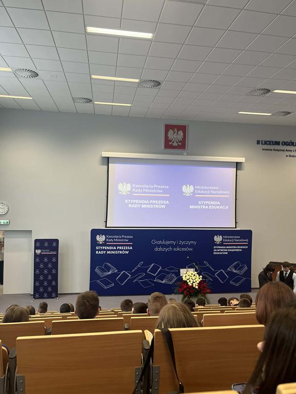 W dn.12.01.2026 r. w Białymstoku odbyło się uroczyste wręczenie nagród Prezesa Rady Ministrów. Wśród wyróżnionych była nasza uczennica z klasy 2AP Dominika Pogroszewska, której nagrodę wręczyła aktualna minister MEN-u p. Barbara Nowacka.